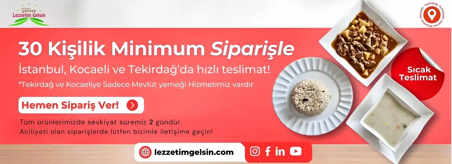 Mevlit ve İftar yemeklerinde teslimat süremiz 5 gündür. Aciliyeti olan siparişlerinizde lütfen bizimle iletişime geçiniz