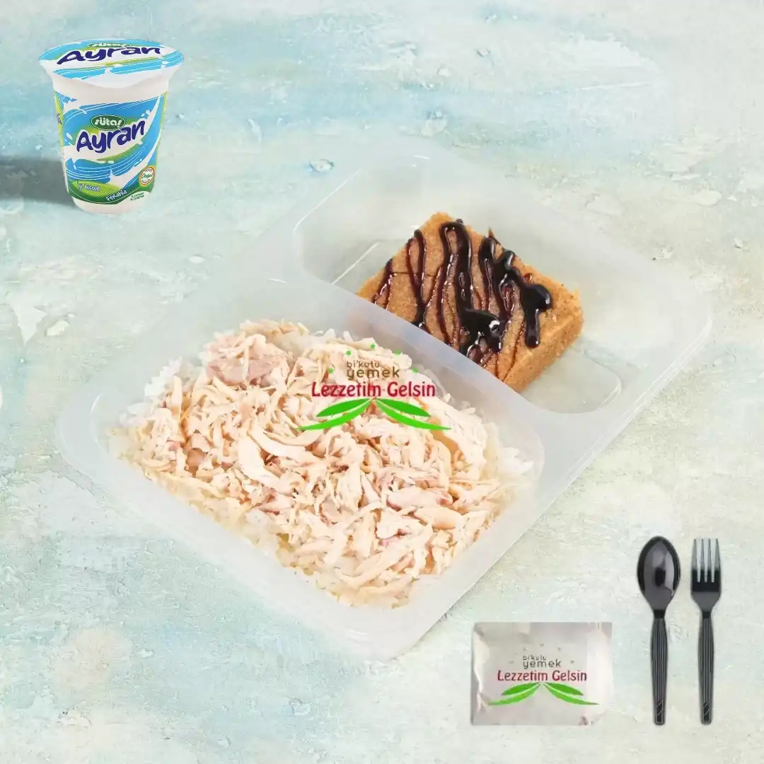Tereyağlı Pilav + Didilmiş Tavuk + Ayran + Çikolata Soslu İrmik Helvası + Ayran