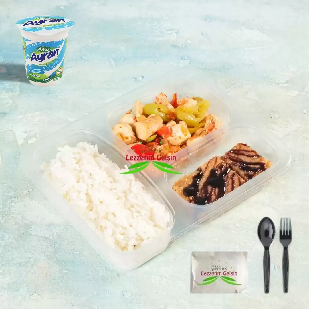 Tüm ürünlerimizde sevkiyat süremiz 5 gündür. Aciliyeti olan siparişlerinizde lütfen bizimle iletişime geçiniz.Tavuk Kavurmalı Tereyağlı Pilav + Çikolata Soslu İrmik Helvası + Ayran
